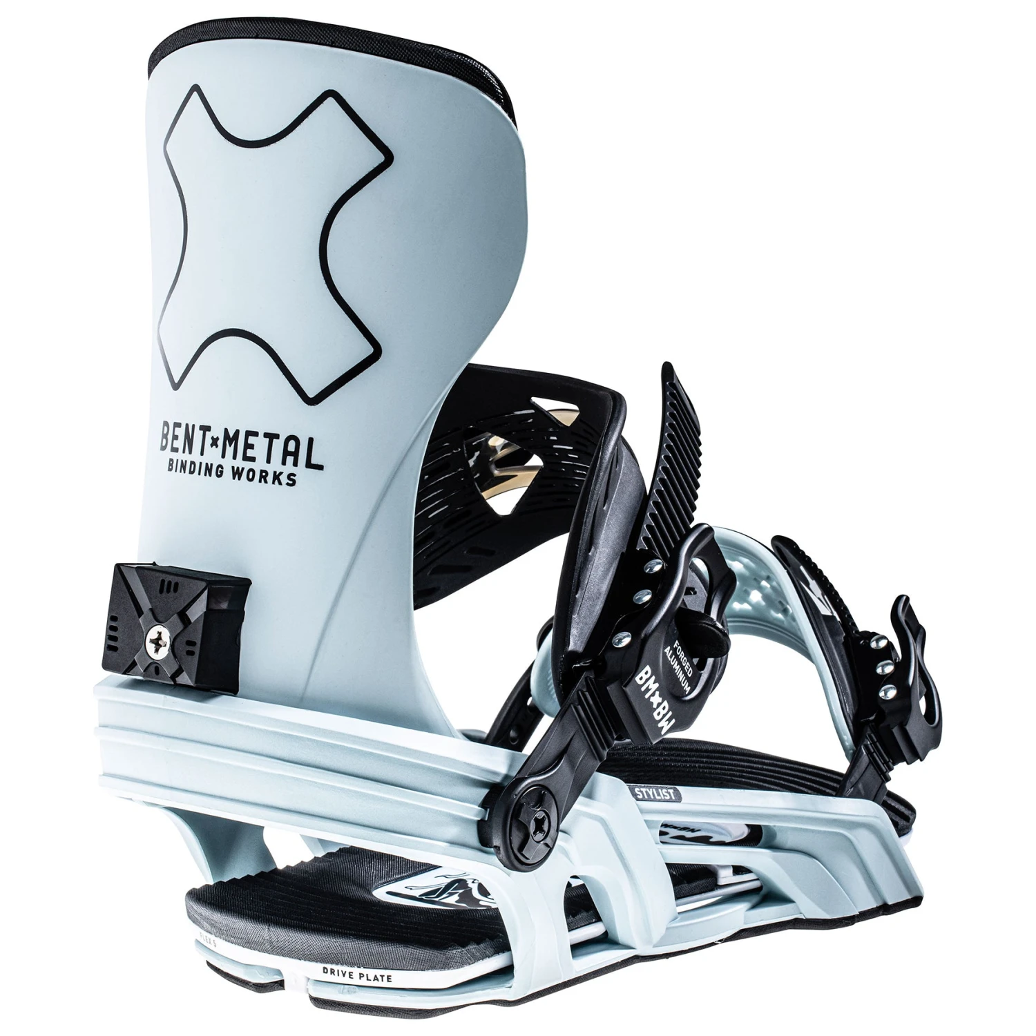 The Stylist features a uni-body chassis that is designed to absorb vibration for a smoother ride while giving you all the response you need. The drive plate is made of Magnesium fibre, with a poly core and eco-sublimated topsheet material (found on snowboard topsheets) that creates a medium flex pattern for all mountain versatility. What differentiates Bent Metal bindings from a traditional binding is the interchangeable base plates, allowing you to modify the response of your binding based on the type of riding you will be doing.