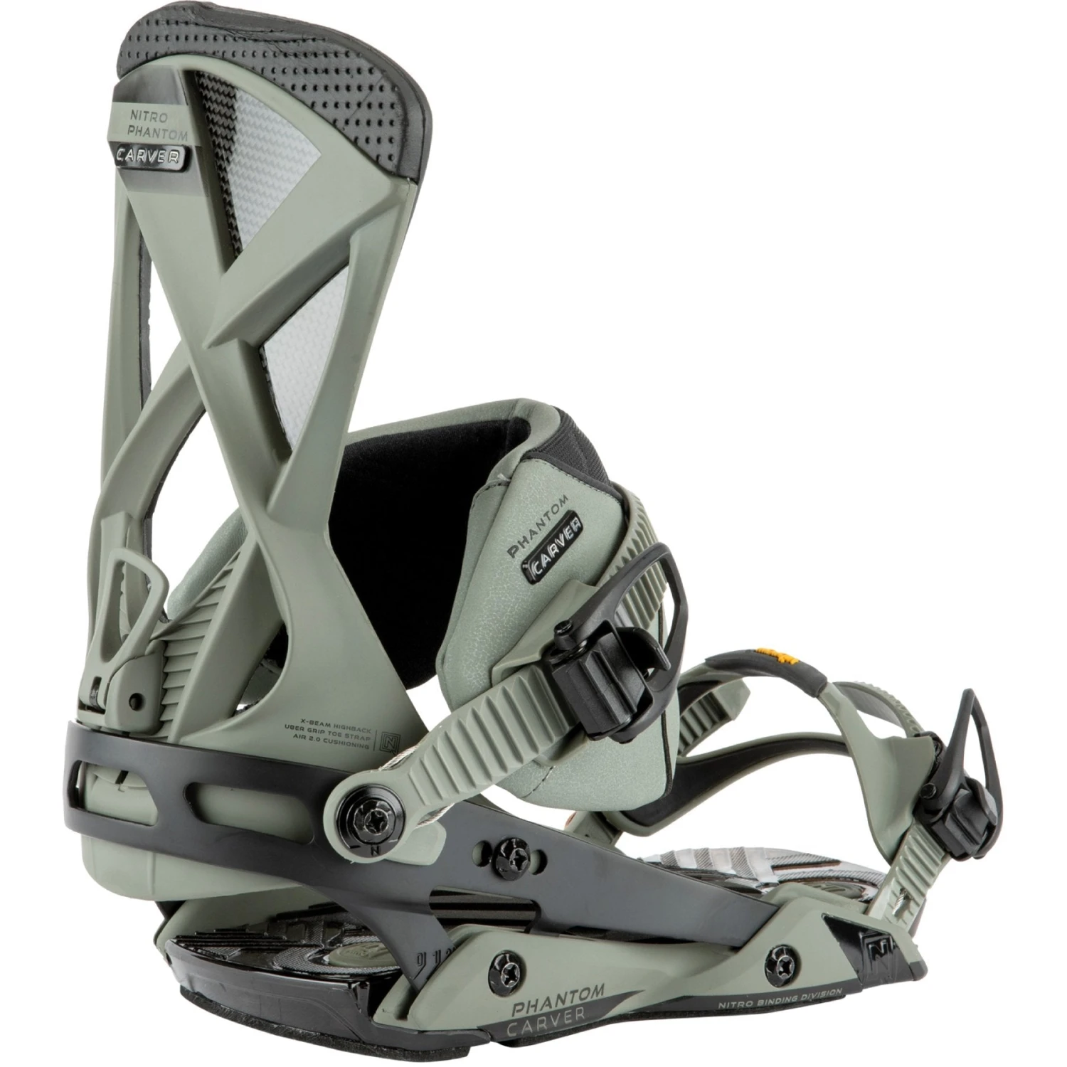 The 2022Â Nitro Phantom Carver is a high-performance snowboard binding engineered to get you edge to edge with speed and precision. The Carver takes the original Phantom and boosts it with a stiffer, carbon infused highback, thicker and more responsive straps, and a raised heel for instant edge to edge response. Loaded with carving technologies to promote response, reduce drag and enhance comfort, the Phantom Carver will have you carving with new found precision and power.