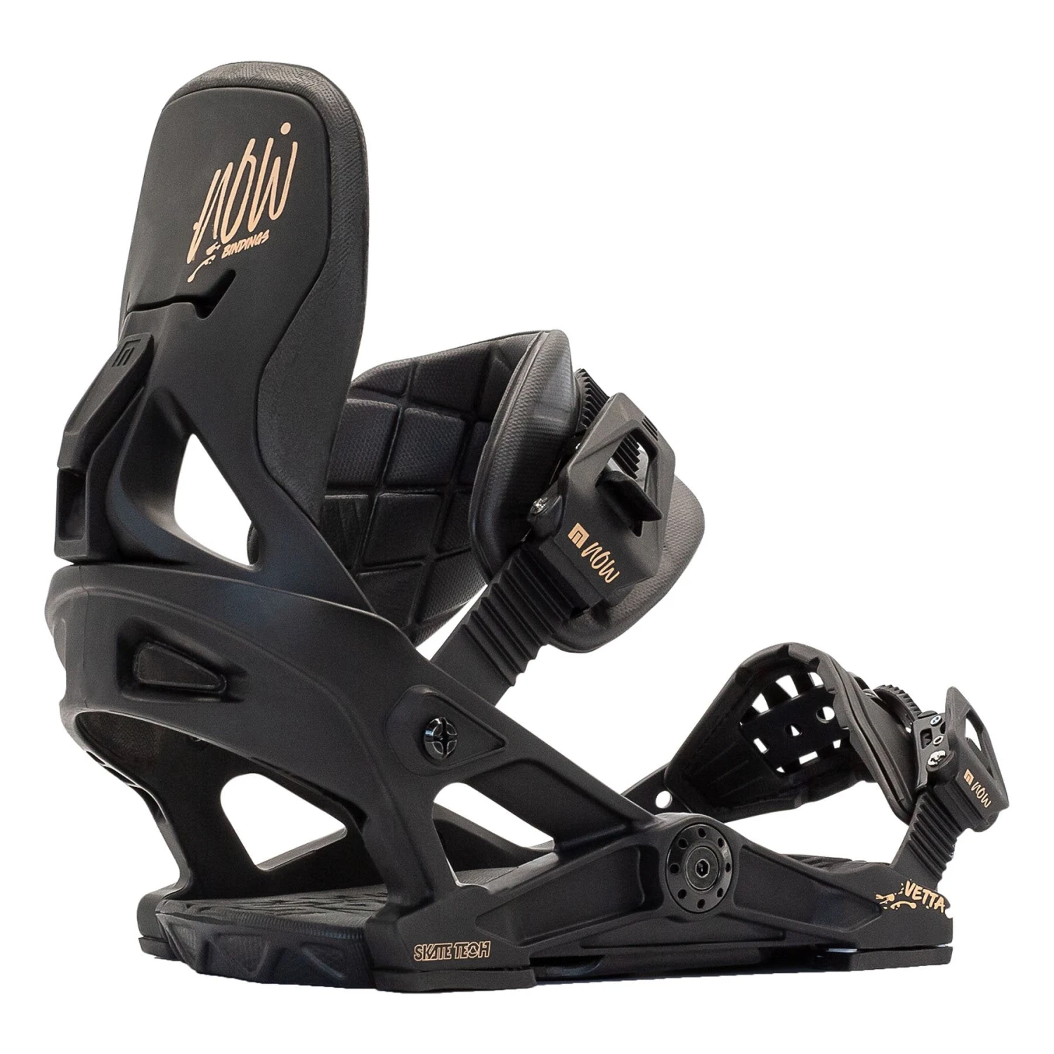 The 2021Â Now Vetta women’s binding is the introduction of Now Skate Tech into their women’s line of bindings. This ultimate board-to-binding interface gives you power and drive completely underfoot and makes your ride feel more natural than ever before. This all-mountain binding has a mid flex that loves terrain all over the hill and has one of the most comfortable highbacks on the market.