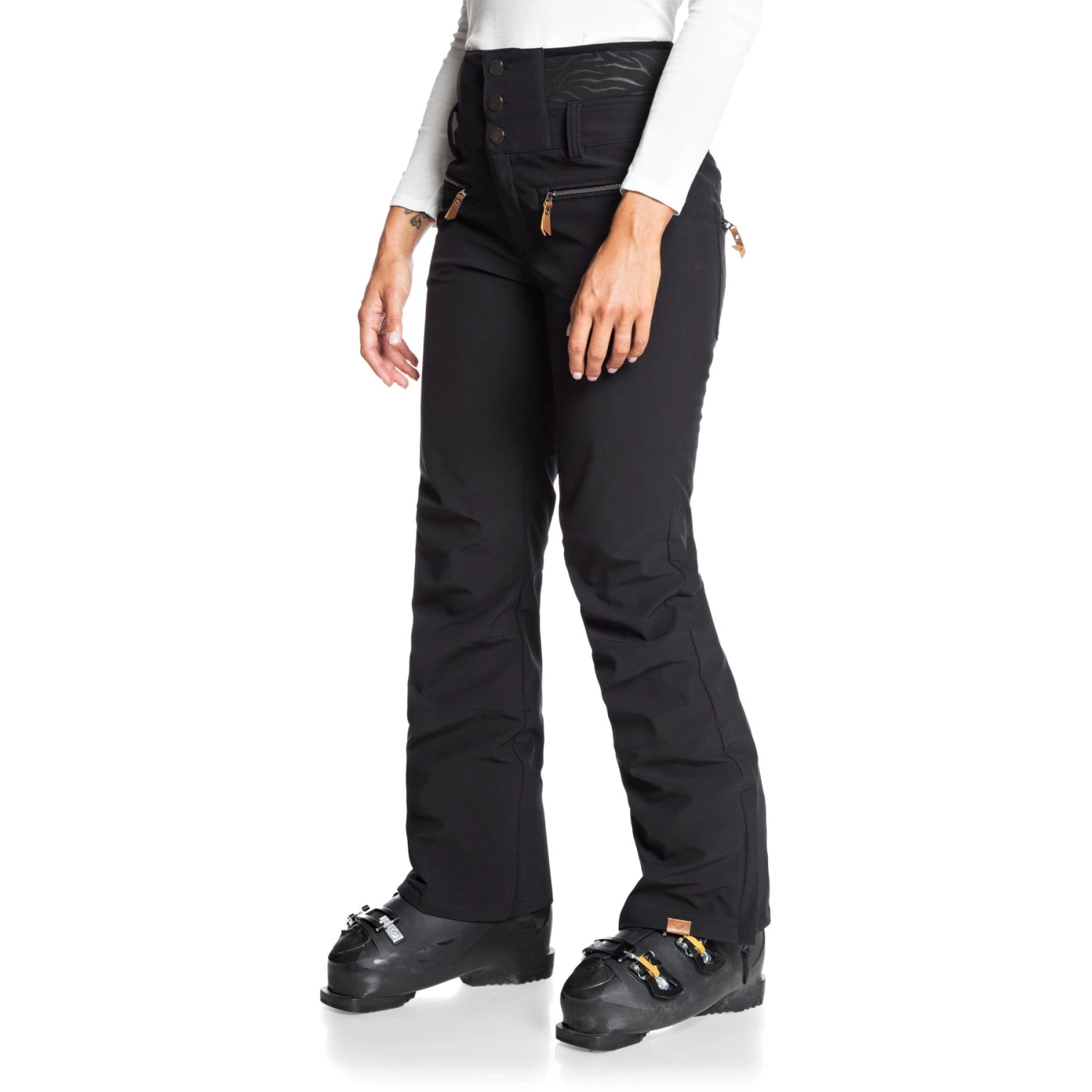 The 2021Â Roxy Rising High Pants is the ideal pant if you are looking for something that offers a higher waist fit. The added neoprene waist panel is a flattering addition to this pant and with the 15k waterproofing, this shell pant will keep you dry all season long.