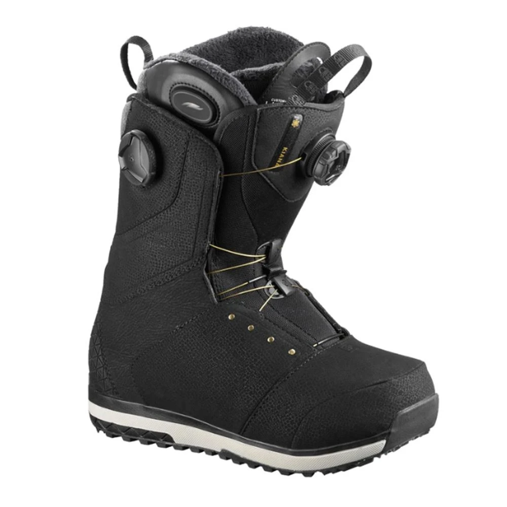 The 2019 Salomon Kiana Toast Focus Boa is a top shelf womens boot for the rider that likes to ride anything and everything. Featuring a versatile mid flex, the convenient double Boa lacing system, plus a powered internal heating system, the Kiana Toast is sure to keep you warm, comfortable, and in your boots all day long.